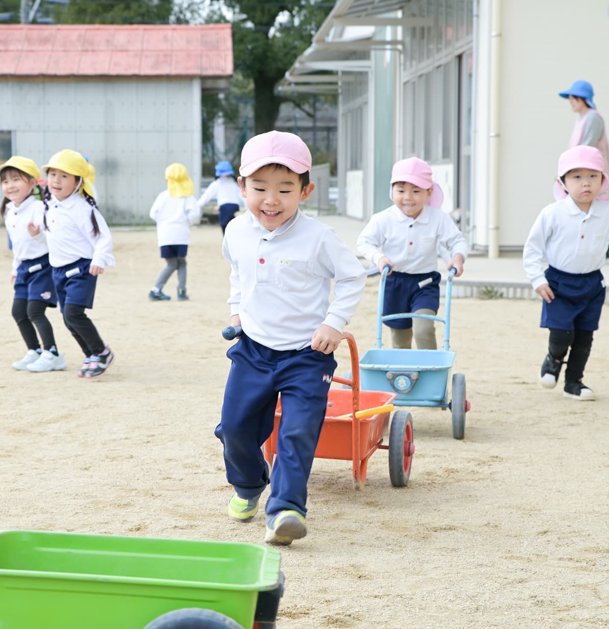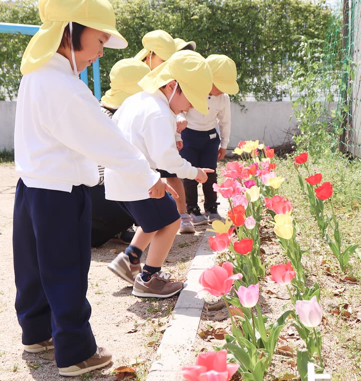 私たちは恵まれた自然環境の中で日々、土に触れ水をやり、花や野菜などを育てることで、命の大切さが分かり、やさしい心を備えた子どもに育てます。
