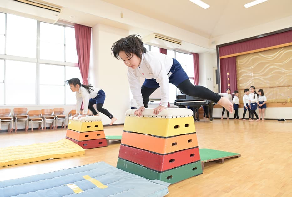 子どもが、「人間」として育っていくためには、生物的な発達と身体的な発達、そして文化的な発達が必用不可欠です。幼稚園は、家庭という集団から、初めて他者との集団を経験し、様々な「ルール」を知る場所です。他者との関わりを通して、主体的な生活や遊びができ、環境の中で、一人ひとりが成就感を味わい、自信と意欲をもって過ごし、「人間」として成長していきます。