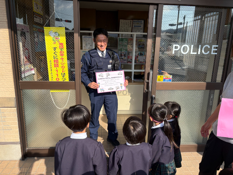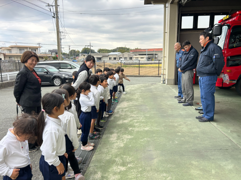 11月23日(日)の勤労感謝の日に向けて、地域の働いている人たちへ日頃の感謝の気持ちを伝えに園児が訪問しました。消防署や派出所、郵便局に鞍手町役場などを訪問し、お礼の気持ちをこめたメッセージカードを渡すと、職員の皆様もとても喜んでいただけました。