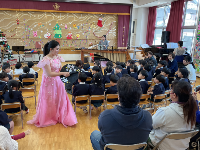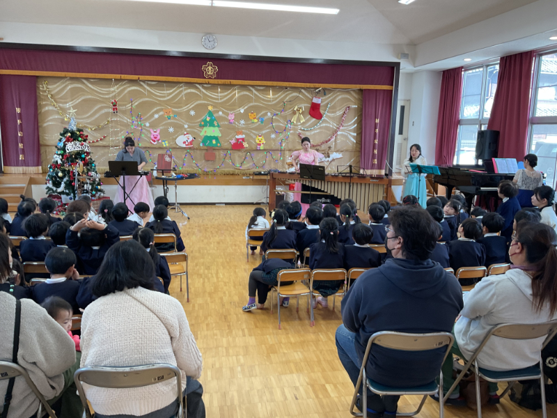 12月22日(月)にクリスマスコンサートがありました。マリンバなどいろんな楽器の音色に触れた後は、サンタさんからプレゼントももらって楽しいクリスマス会になりました。